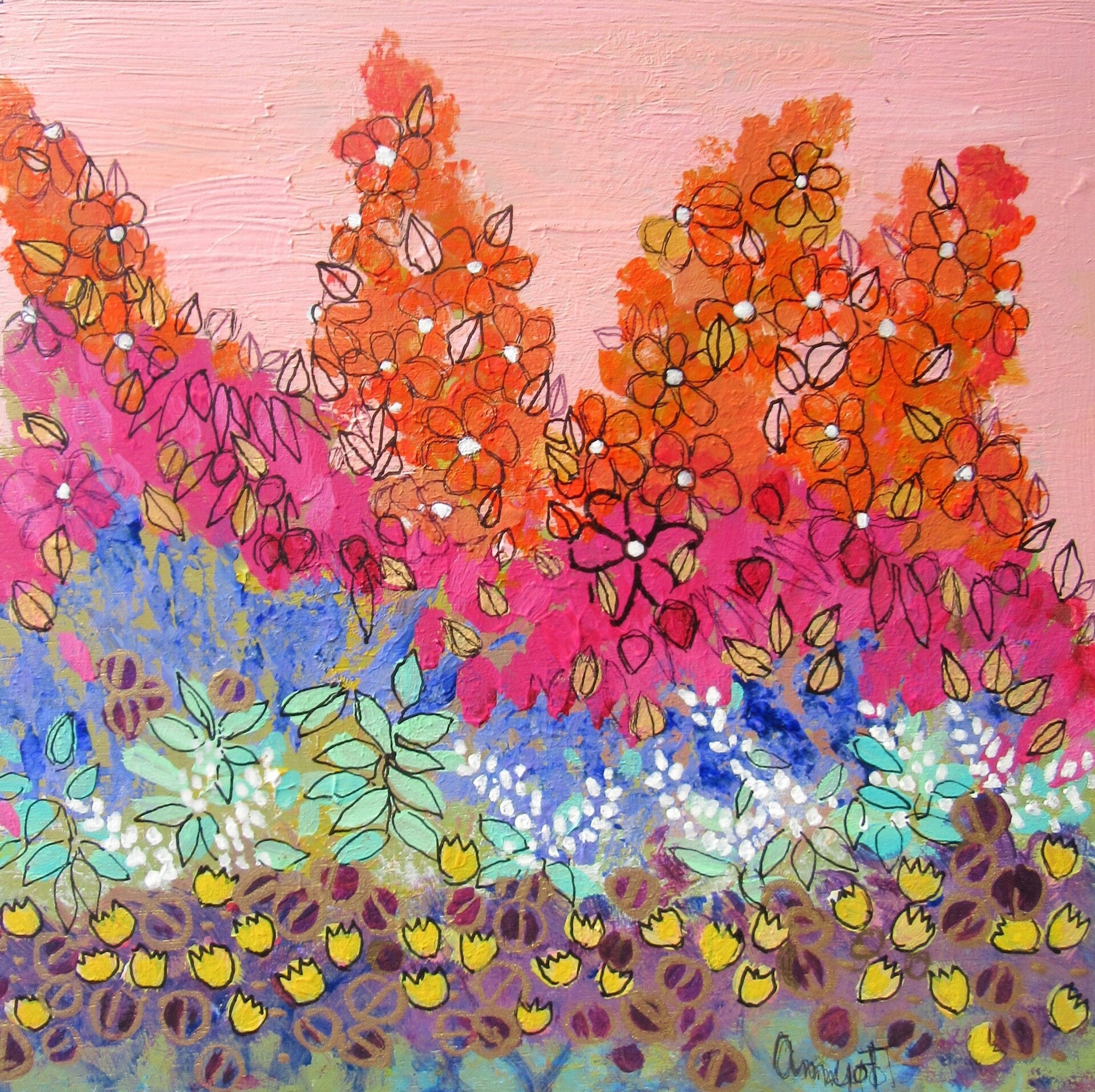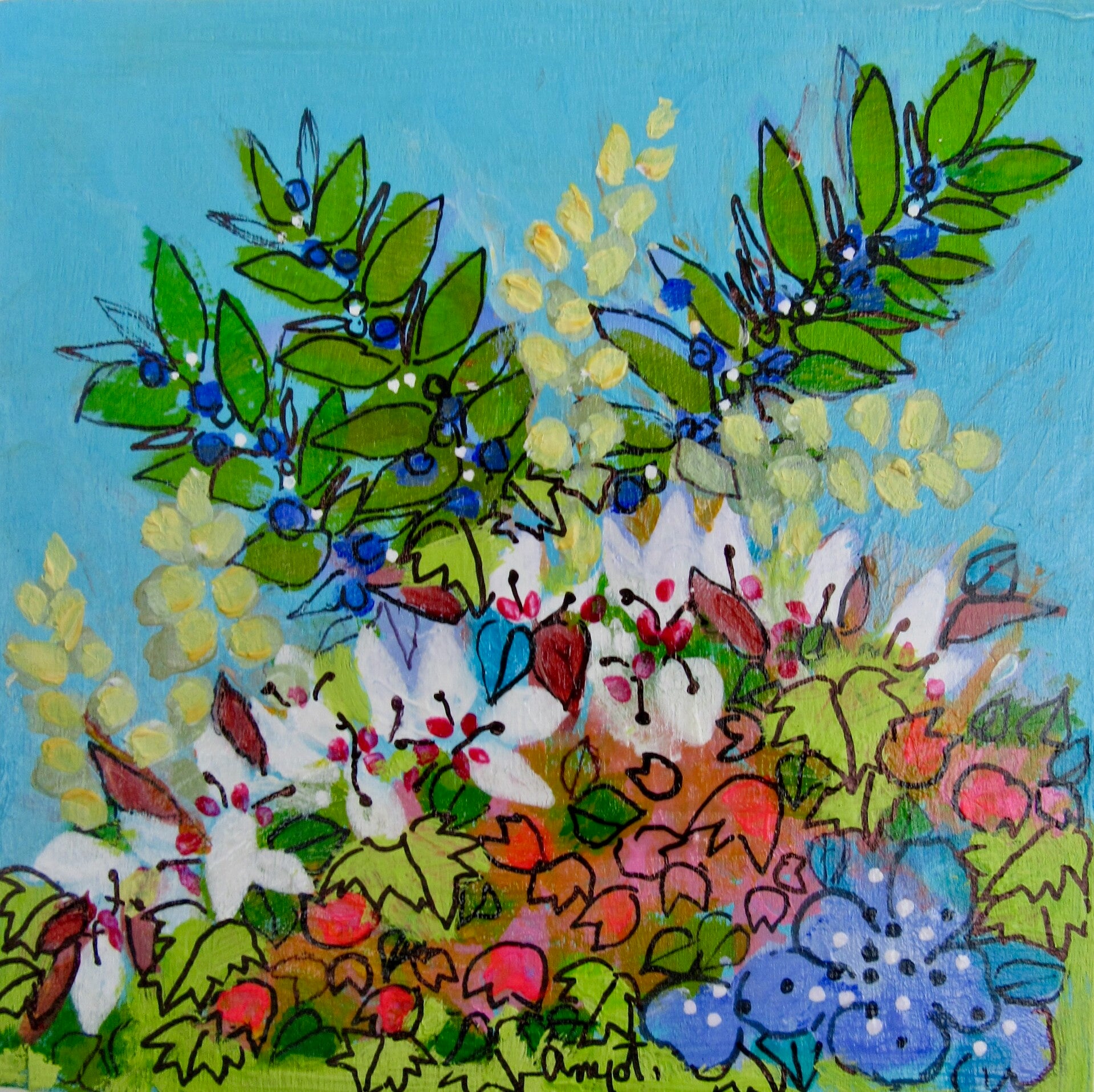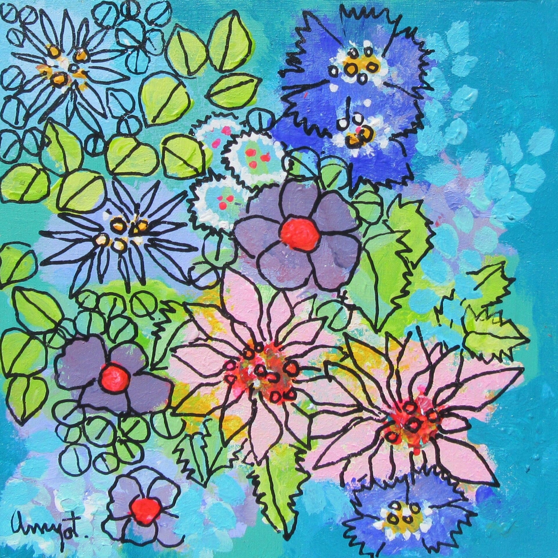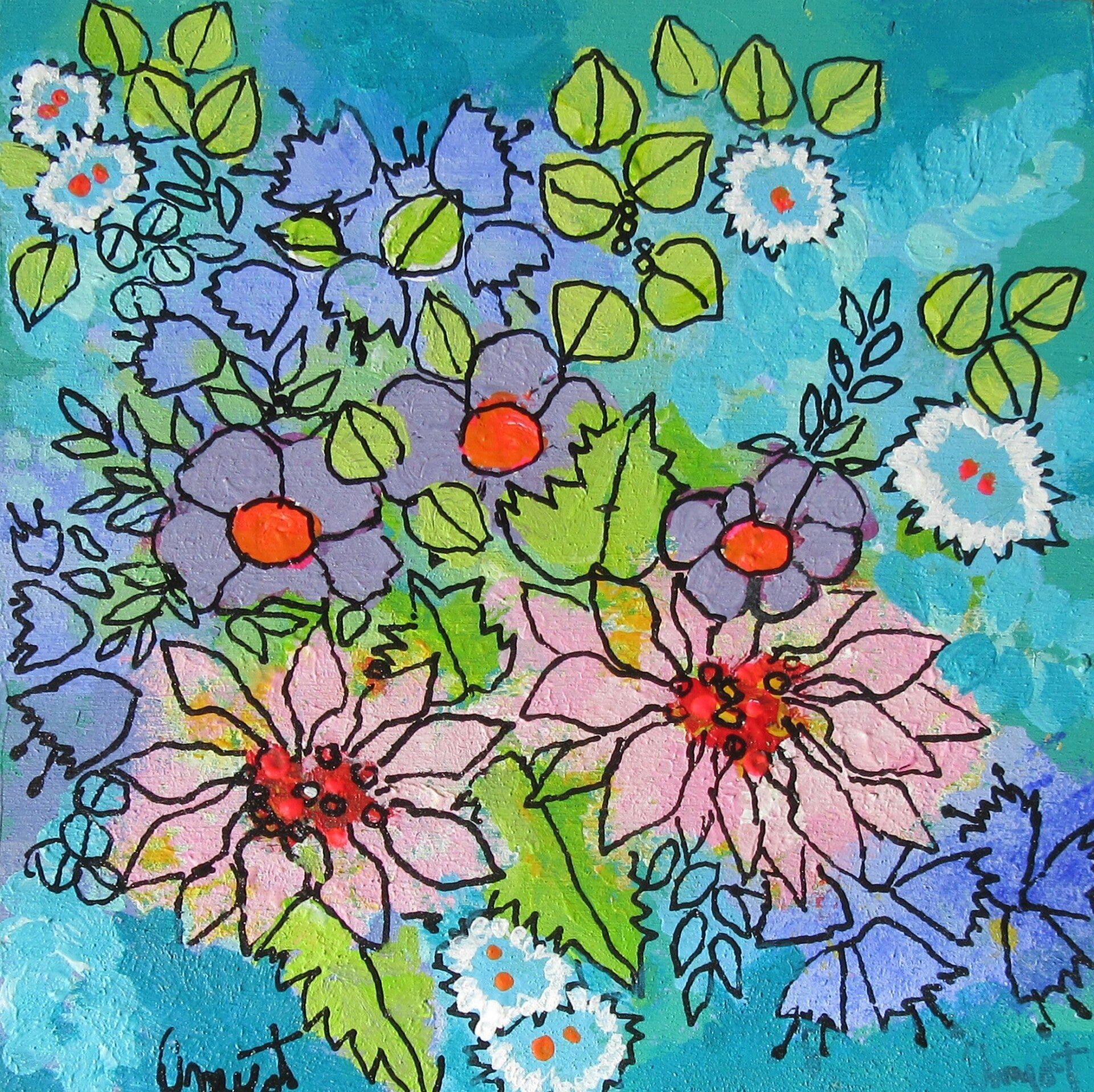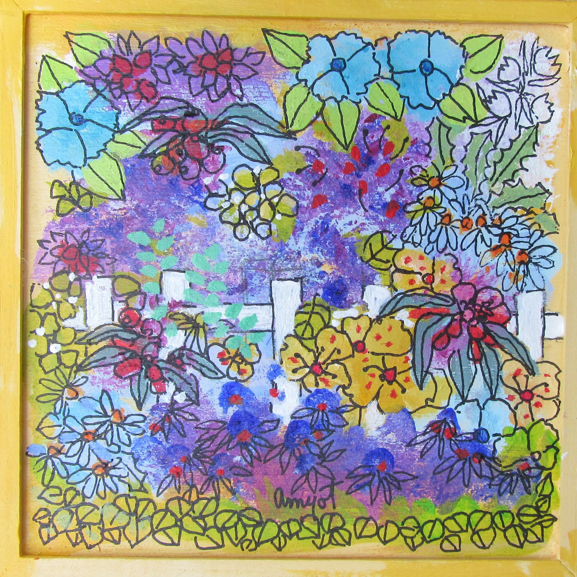 Clôture fleurie (2/2) acrylique sur bois 5x5 (12cm x 12cm)