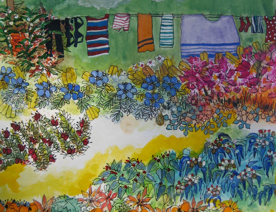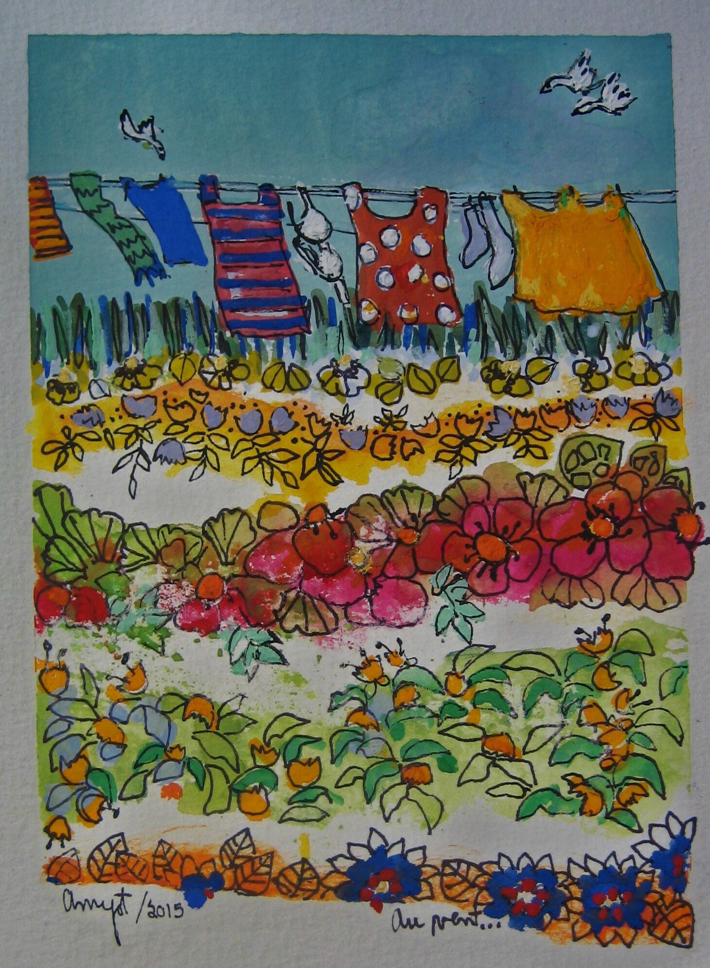 Fin mai gouache, aquarelle, plume et feutre (60cm x 42cm) 24x16